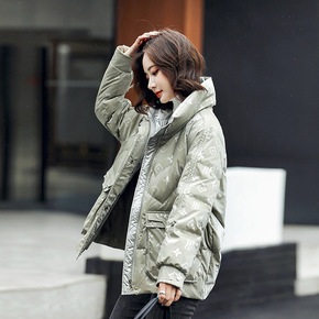 小个子羽绒服女2021年新款白鸭绒宽松字母印花立领...