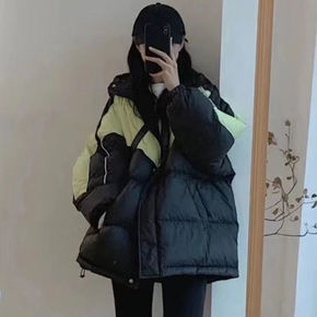2021年冬季新款大码女装拼色显瘦韩国棉服东大门学...