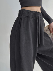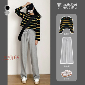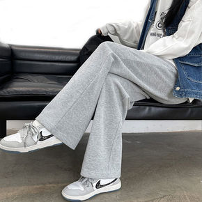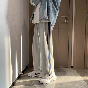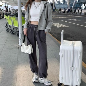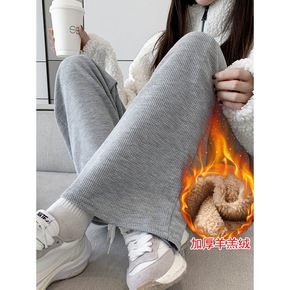 灰色阔腿裤女春秋季高腰垂感休闲宽松直筒运动加绒秋冬...