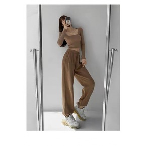 春夏2021薄款休闲裤女学生韩版宽松运动百搭松紧腰...
