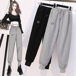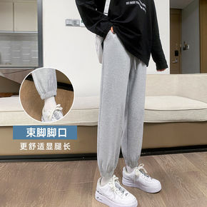 灰色运动裤女2022新款春夏宽松束脚薄款哈伦裤胖m...