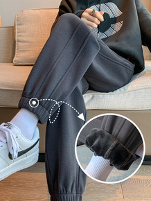 秋冬运动裤女小个子学生加绒高腰显瘦卫裤哈伦裤子女宽...