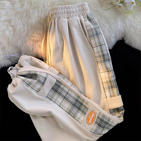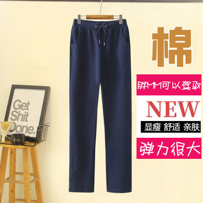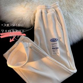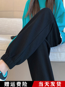 大码华夫格运动裤女春秋卫裤200斤胖mm宽松休闲裤...