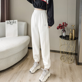 白色欧货卫裤束脚ins潮加绒运动裤女欧洲站秋冬20...