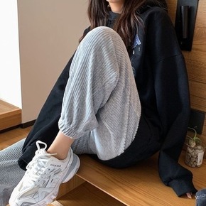 雪尼尔灯芯绒裤子女春秋50小个子八分运动裤休闲宽松...