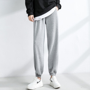 灰色运动裤子女秋冬季宽松束脚2022春季新款小个子...
