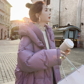 2021新款冬季韩版针织毛线连帽羽绒服女中长款宽松...