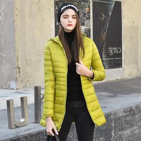 跨境2021新款秋冬轻薄羽绒服女中长款大码连帽修身...
