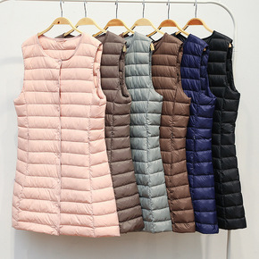 轻薄圆领羽绒马甲女士保暖内胆中长款大码薄款羽绒服无...