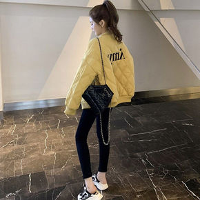 棉衣女秋冬2021新款韩版宽松学生短款加厚菱格小个...