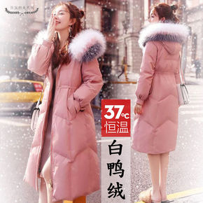 200斤大码白鸭绒羽绒服女中长款大毛领过膝2021...