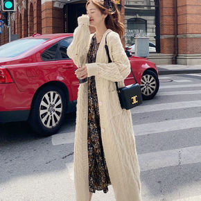超长毛衣外套女秋冬季麻花百搭韩版慵懒风宽松加厚长款...