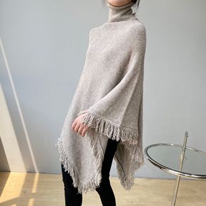 秋冬新款开叉套头高领百搭雨披式毛衣蝙蝠袖大码针织衫...