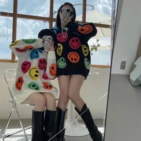 秋冬新款宽松甜美少女草莓套头毛衣慵懒风复古日系外穿...