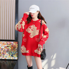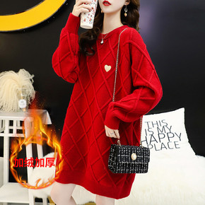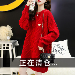 2021秋冬大码胖妹妹显瘦毛衣宽松中长款遮肚藏肉针...