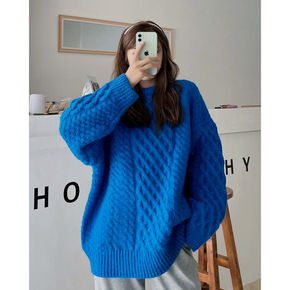 2020冬季新款纯色麻花套头宽松慵懒风软奶蓝秋冬慵...