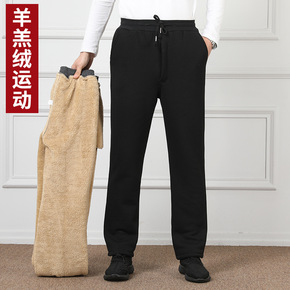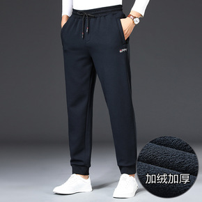 冬季中年男士休闲加绒加厚纯棉运动裤宽松爸爸裤子男中...