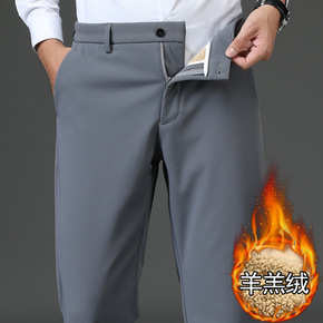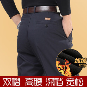 冬季休闲裤男直筒加绒加厚男式中高腰商务中老年宽松男...