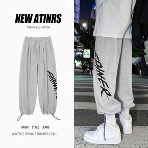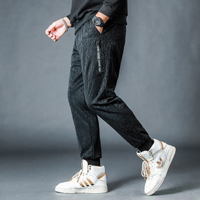 2021春秋新款男士黑色休闲裤男个性印花青少年潮牌...