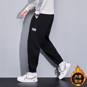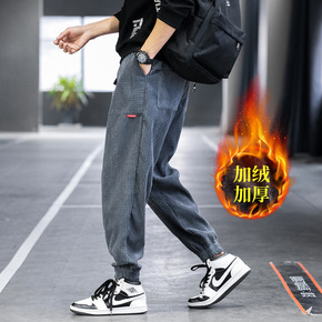 休闲裤男宽松2021新款断面摩丝加绒加厚保暖九分裤...
