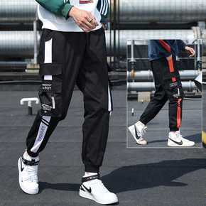 国潮机能风束脚裤子男秋冬宽松潮牌ins嘻哈伞兵裤多...