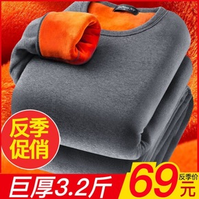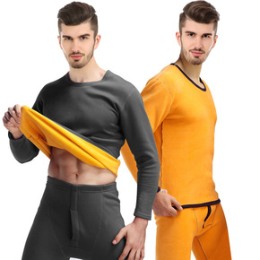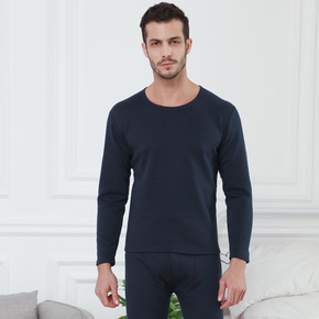 厂家秋冬新款加绒加厚保暖内衣男士棉质纯色低领保暖内...