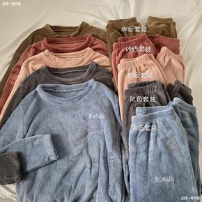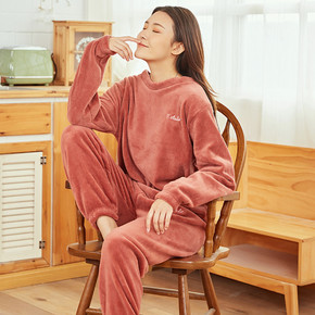 珊瑚绒睡衣女冬季加厚加绒套头圆领秋冬大码法兰绒保暖...