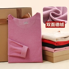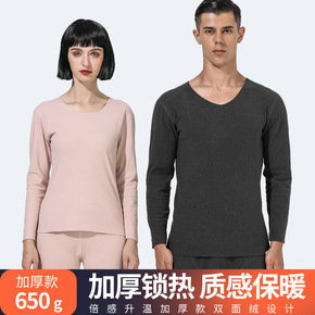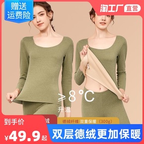新款加绒加厚无痕德绒保暖内衣女套装发热棉毛衫秋冬男...