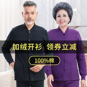 中老年人纯棉保暖内衣套装男加绒加厚夹棉秋衣秋裤女老...