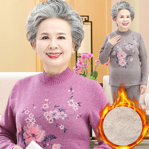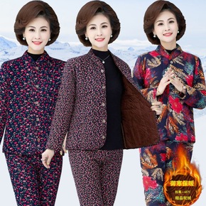 奶奶装冬季套装棉衣棉裤两件套老年人女装棉袄加绒加厚...