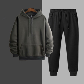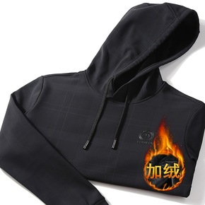 春季水貂绒卫衣男连帽加绒加厚男士带帽卫衣宽松保暖休...