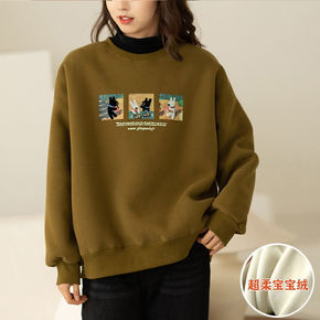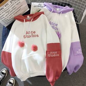 新款秋冬韩版网红宽松百搭加绒加厚高领卫衣女潮ins...