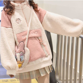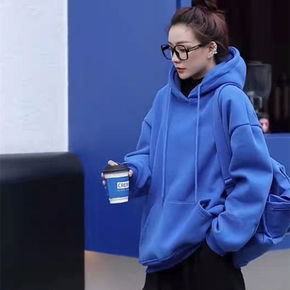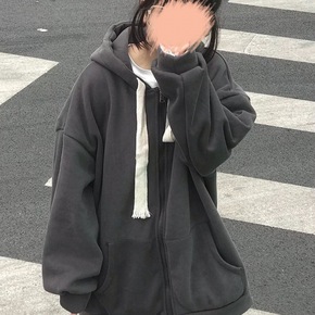 开衫卫衣女生外套秋冬加厚甜美学院风休闲宽松连帽加绒...