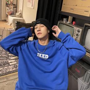 100%纯棉男士圆领卫衣秋冬新款港风学生宽松情侣款...