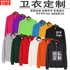 拉链加绒卫衣广告衫印字logo纯棉连帽工作服团体外...
