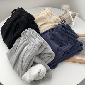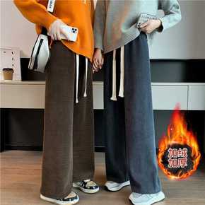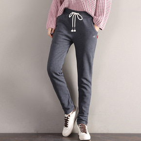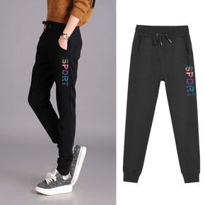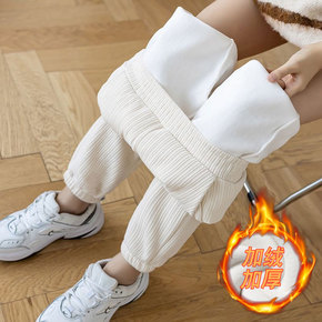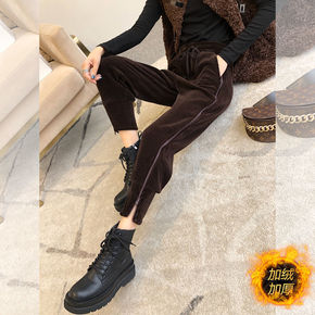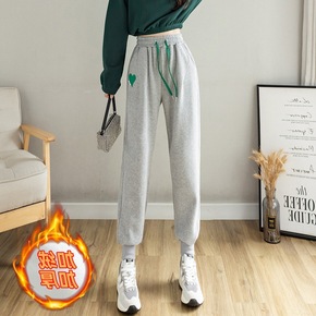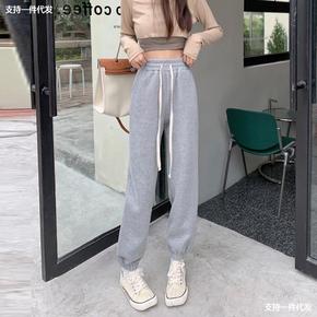 裤子女秋冬季韩版宽松加绒加厚直筒运动裤高腰休闲哈伦...
