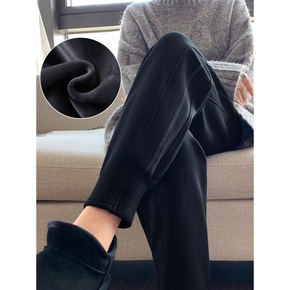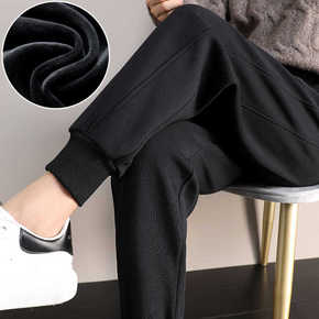 休闲裤女时尚潮流黑色裤子女冬季加绒加厚宽松显瘦卫裤...