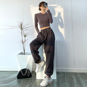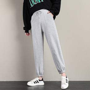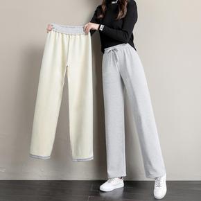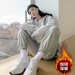 春秋休闲运动裤女秋冬2021新款加厚直筒灰色显瘦加...