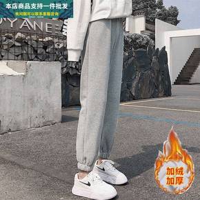 加厚运动裤女秋冬宽松束脚新款加绒裤子外穿纯棉显瘦高...