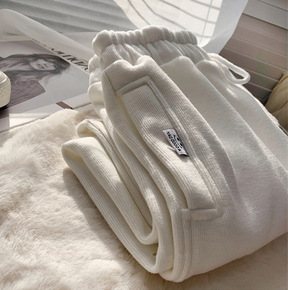 实拍加厚加绒欧棉绒抽绳运动裤女秋冬宽松慵懒垂感拖地...