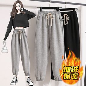 运动裤女秋冬季加绒加厚2021纯棉大码学生宽松束脚...