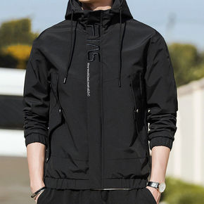 2022春季新款外套男连帽夹克男加绒潮流简约休闲修...