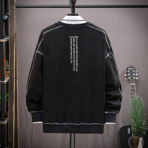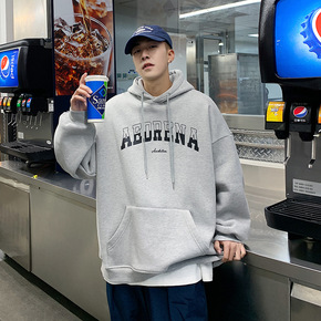 2022秋冬款加绒加厚男士休闲圆领卫衣港风宽松大码...
