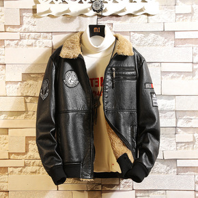 新款男士休闲加绒皮衣秋装外套男韩版修身潮流帅气青年...