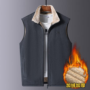 秋冬加绒羊羔绒马甲男抓绒衣中老年背心夹克外套爸爸装...