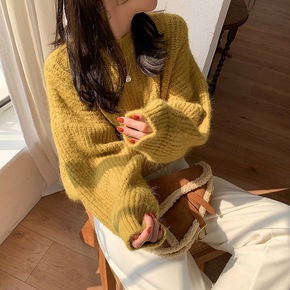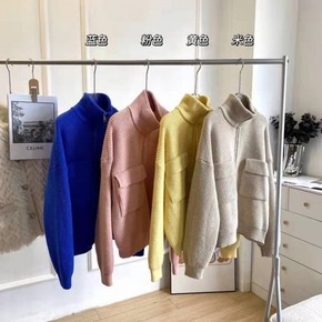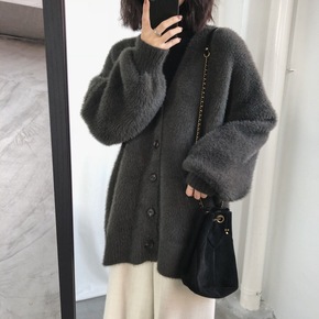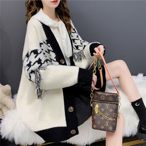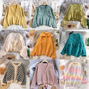 2021欧洲站秋冬女装厚开衫外套毛衣尾货宽松针织衫...