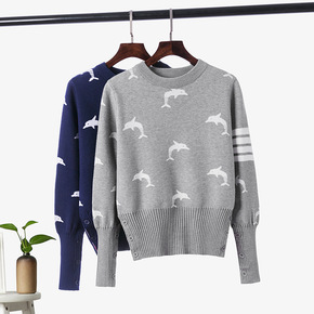 2020年秋冬鲸鱼海豚刺绣TB套头针织衫圆领宽松长...