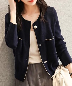 香影轻奢专柜冬季羊毛针织开衫女珍珠扣小香风短外套早...