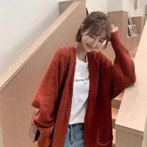毛衣女春季韩版宽松大码开衫外套针织秋冬加厚长款过膝...