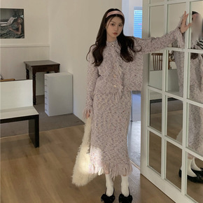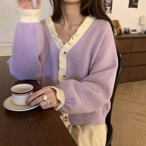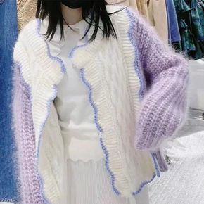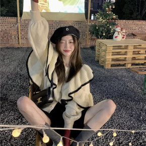 法式复古荷叶边毛衣开衫外套女秋冬季2022年新款宽...